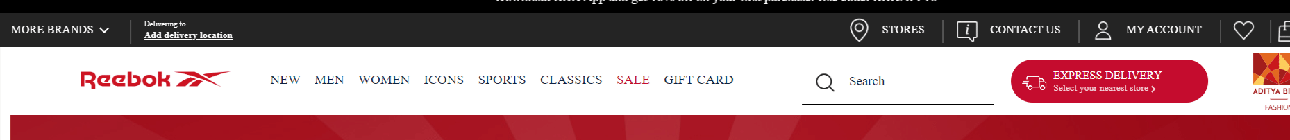 Shop at Reebok and get up to 50% discount with an extra 10% OFF with code- RBKAPP10.