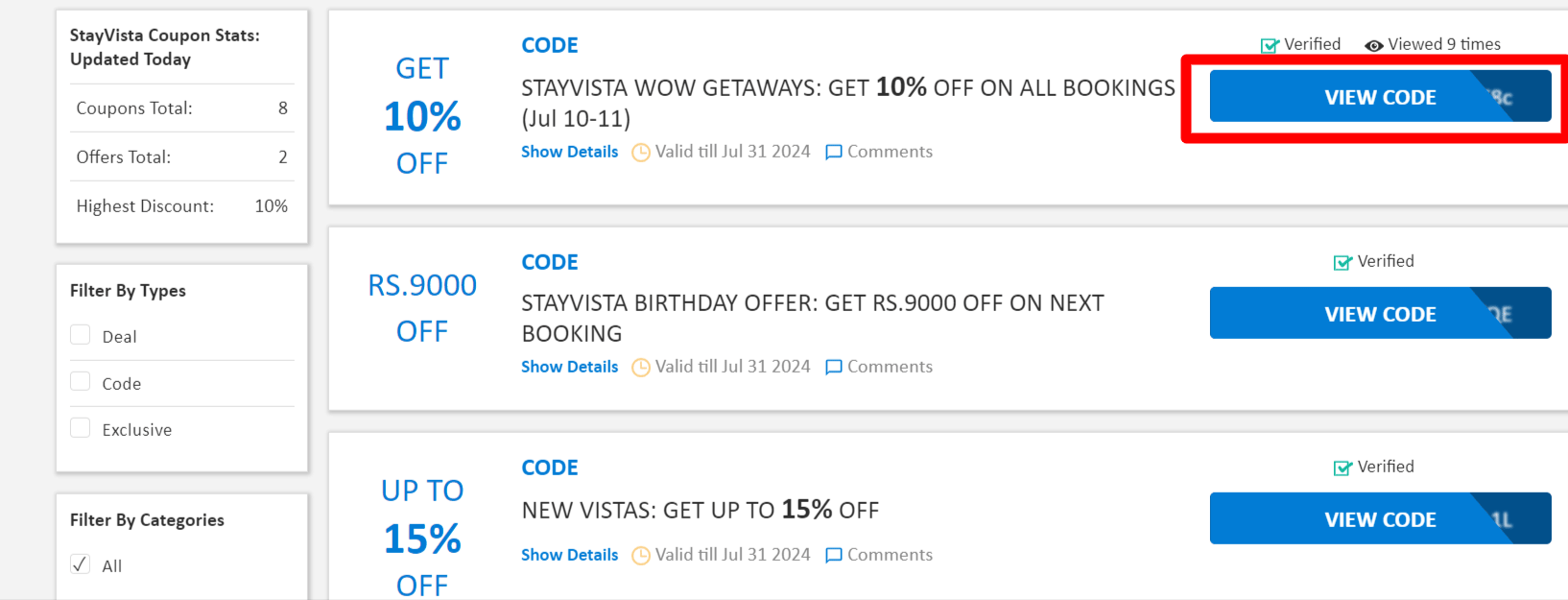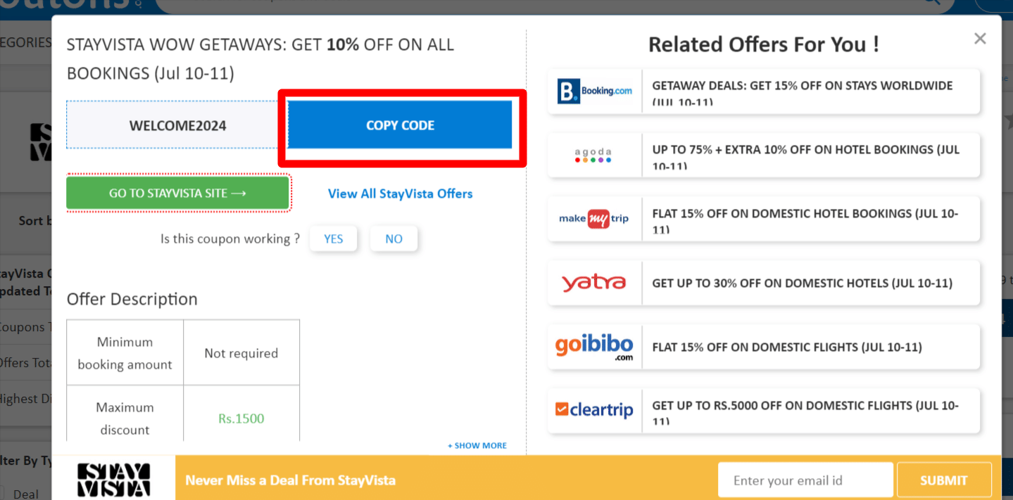 - Stay Vistas Getaway: Get a 10% discount on booking with up to Rs.1,500. Use code- WELCOME2024