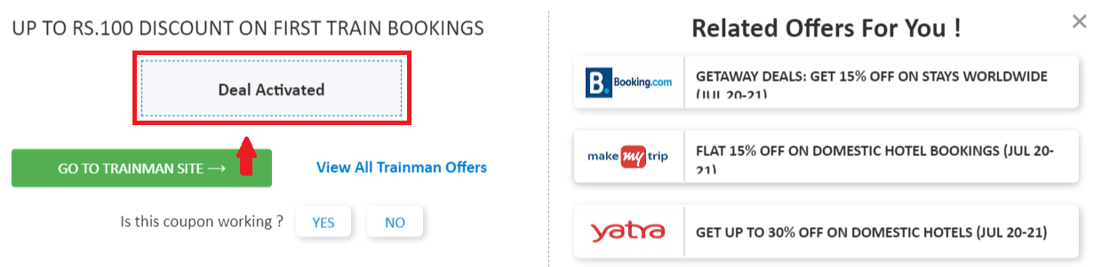 Steps To Use Trainman Offers/Deals