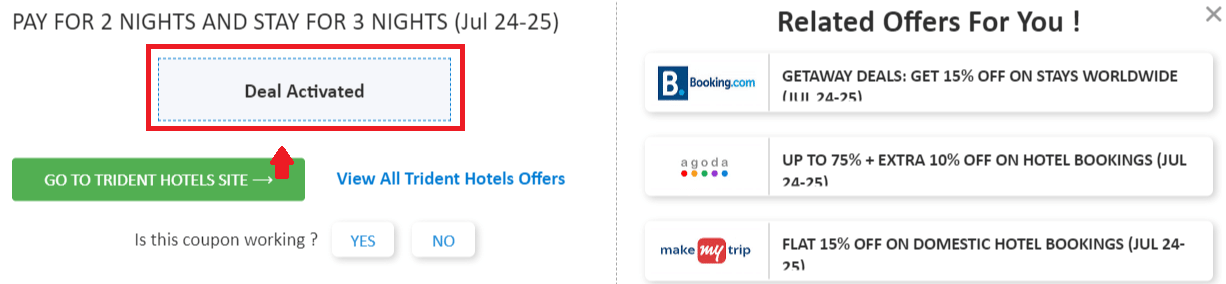 Step 2: Once, you click on the "GET DEAL", the offer gets activated.