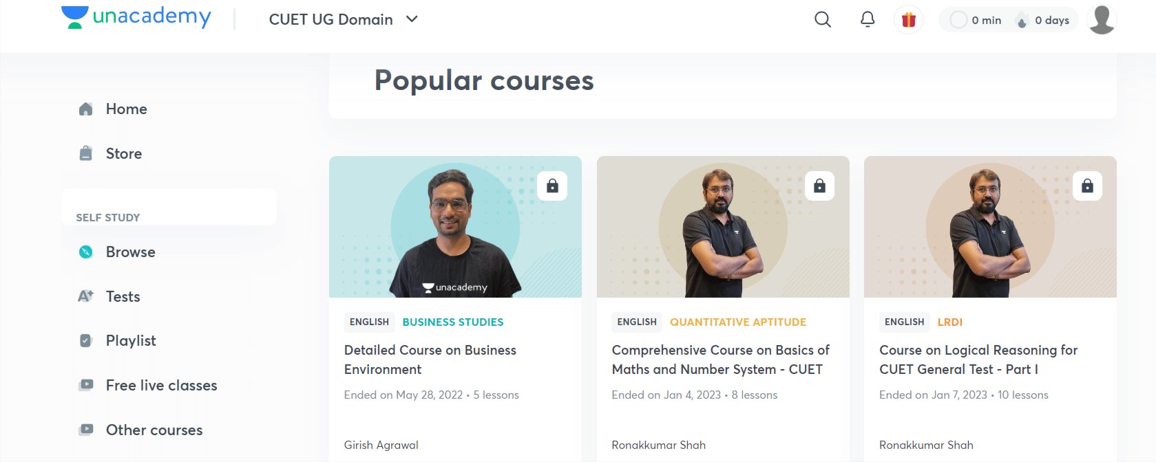 • Free Classes: Try free Unacademy learning and subscribe to the available courses by choosing the plan.