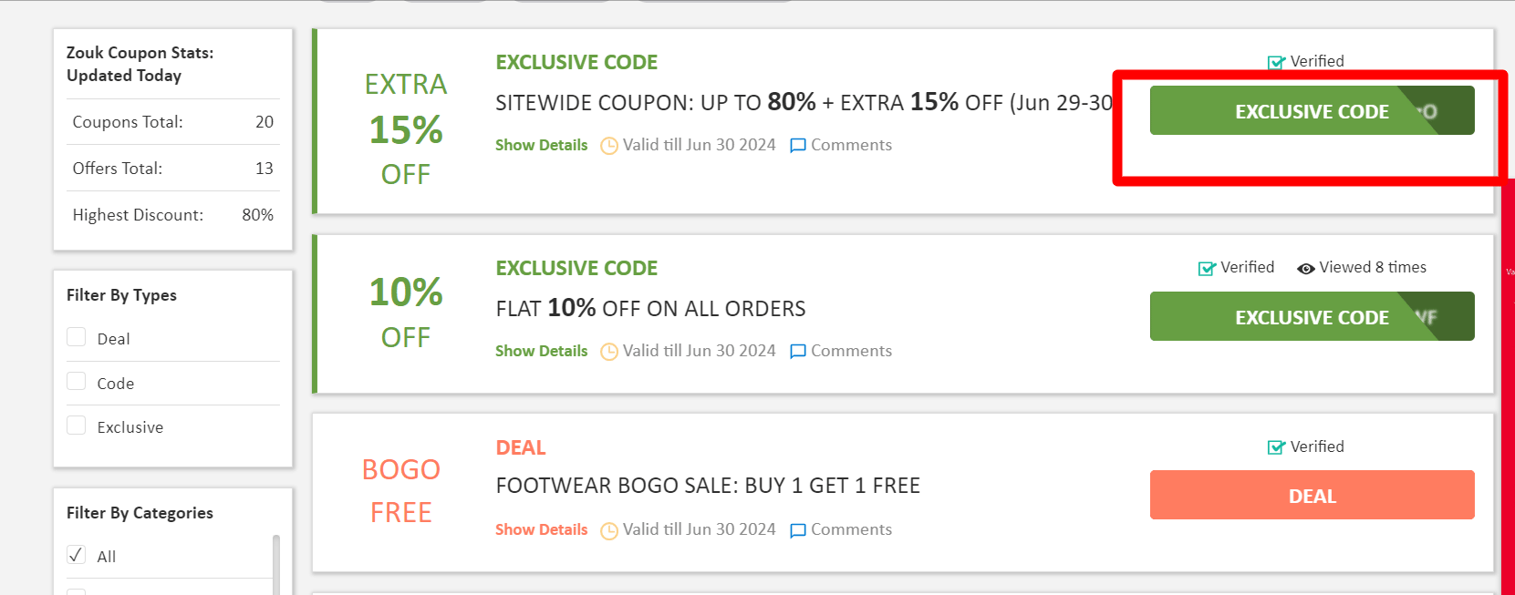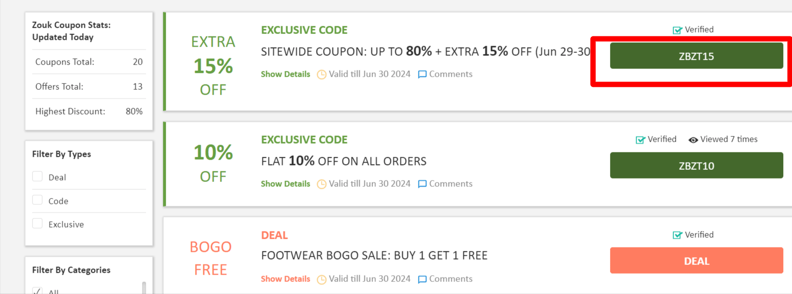 Step 1: Visit Zoutons and Click on the Zouk coupons
